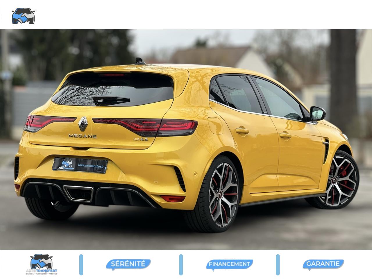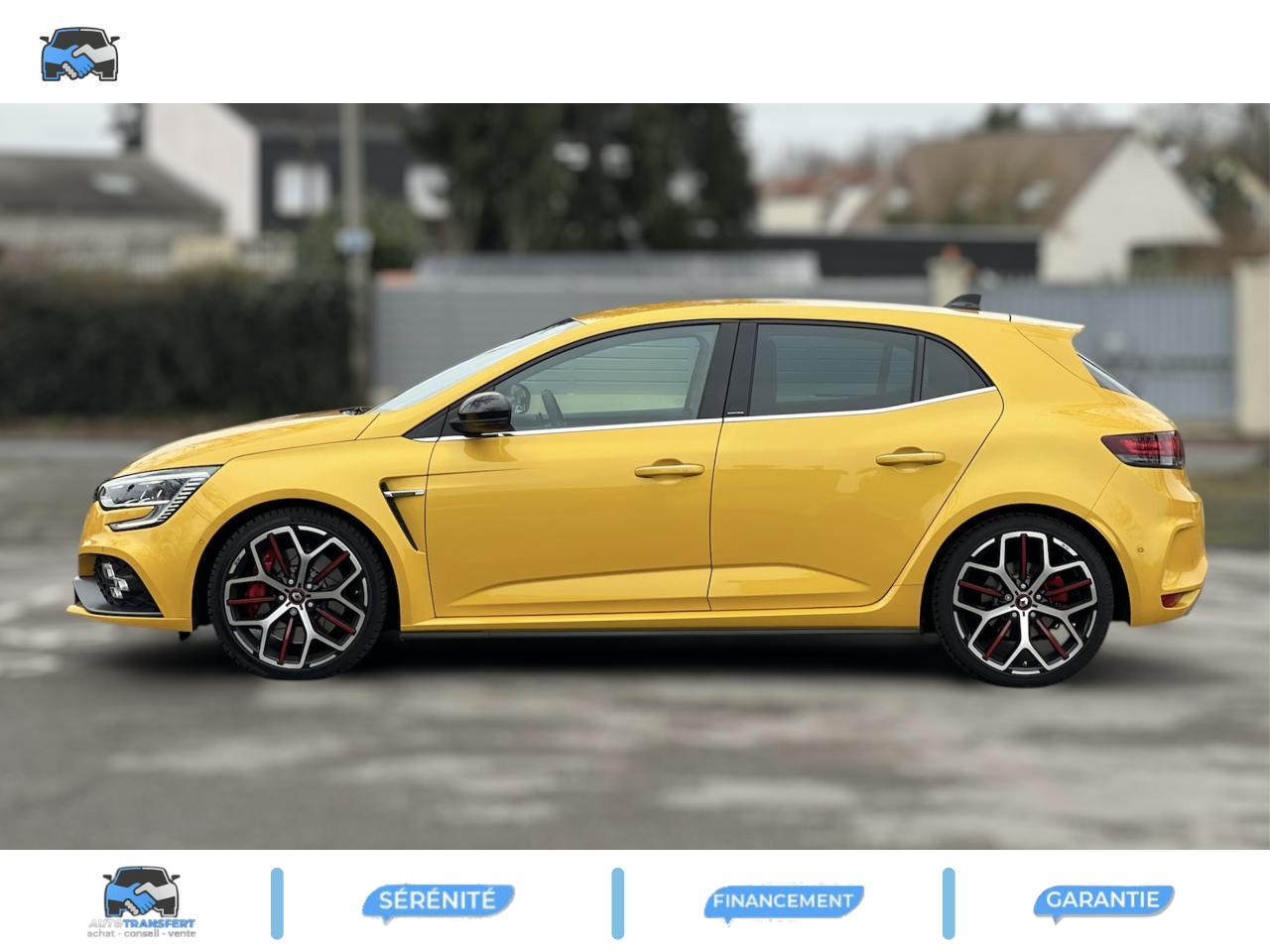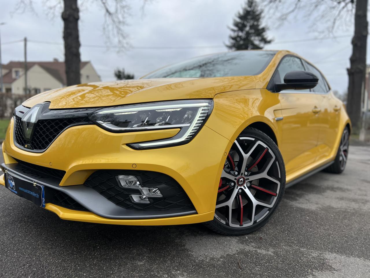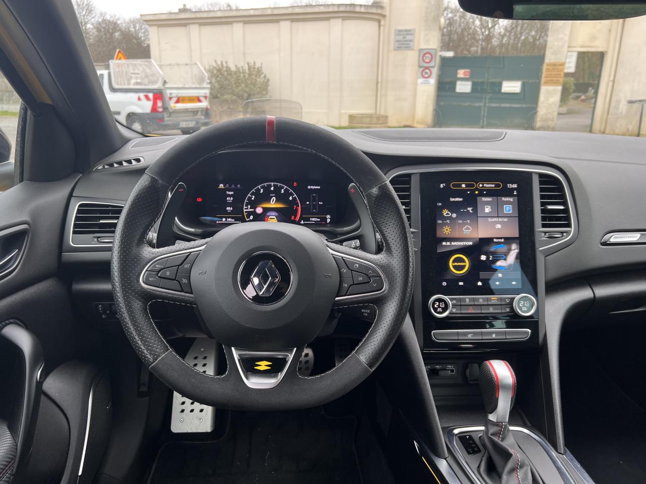 ABS avec aide au freinage d'urgenceAccoudoirs TEP Carbone avec surpiqûres Gris Argent et RougeAffichage tête hauteAide au démarrage en côteAide au parking avantAide au stationnement arrièreAide au stationnement latéralAiles avant et arrière élargies R.SAirbags frontaux conducteur et passager adaptatifs (airbag passager déconnectable)Airbags latéraux (thorax / bassin) avantAirbags rideaux de têtes aux places avant et arrièreAlerte de franchissement de ligneAlerte de survitesse avec reconnaissance des panneaux de signalisationAlerte Distance SécuritéAnimations chromes satinéesAntenne aileron de requin noireAppel d'Urgence RenaultAppuis-têtes intégrés sportBadge spécifique R.S.Bavolet souligné d’une lame noireBecquet arrièreBoîte à gants éclairéeBose Sound SystemBouclier arrière spécifique élargi avec diffuseur fonctionnel et échappement centralCaméra de reculCapteur de toxicité avec recyclage d'airCarte Renault avec accès et démarrage mains-libres avec fermeture à l’éloignementChâssis CupClimatisation automatique bi-zoneCompatibilité Apple CarPlay et Android AutoCompteur avec écran conducteur 10” personnalisableCondamnation automatique des ouvrants en roulantCondamnation électrique des vitres arrière depuis le poste de conduiteCoques de rétroviseurs noir étoiléDétecteur de fatigue du conducteurDétecteur de pluie et allumage automatique des projecteursDifférentiel à glissement limitéDisques de frein bi-matièreDouble-canules d’échappement peintes Gun metal greyEclairage d‘ambiance sur les panneaux de portes avant et arrièreEclairage plafonnier avant et arrière à LEDEtriers de freins rouges siglés BremboExtracteurs d’air à l’arrière des roues avantFeux clignotants arrière dynamiques LEDFeux de jour à guide de lumière LED et effet 3DFeux de jour arrière LED 3D Edge LightFeux de jour avant à LED avec signature lumineuse en forme de CFrein de parking assistéFreinage actif d’urgence avec détection piétonsGrille de calandre spécifiqueInsert carbone sur la planche de bord et les panneaux de porteJantes 19” R.S. Triple ton JerezKit de gonflageKit de réparation des pneusLame F1 spécifiqueLécheurs de vitres chromésLève vitres avant électriques à impulsionLève-vitres arrière à impulsion avec fonction anti-pincementLogo « double-diamant » sur le volantLunette arrière chauffanteMarquage Trophy sur lame F1Multichange down (système de rétrogradage avancé)Palettes au volantPare-brise feuilleté teintéPare-soleil avec miroirs de courtoisie éclairés, conducteur et passager avantPédalier et repose-pied aluminiumPeinture Blanc GlacierPoignées de portes extérieures avec jonc chroméPoignées de portes ton caissePré-équipement alarmePrise 12 V à l'arrièrePrise 12V à l'avantProjecteurs avant Full Led Pure VisionRégulateur et limiteur de vitesseRenault EASY LINK : système multimédia connecté avec tablette tactile 9,3”, navigation embarquée avec cartographie europe, connectivité Bluetooth, radio DAB, commande vocaleRenault Multi-SenseRépétiteurs de clignotant à LED intégrés aux rétroviseursRétroviseurs extérieurs électriques et dégivrantsRétroviseurs rabattables électriquementSellerie AlcantaraSéquence d‘accueil à l‘ouverture du véhicule avec éclairage de signature lumineuseSeuils de portes avant Inox avec marquage Renault SportSiège conducteur avec réglage lombaireSiège conducteur réglable en hauteurSiège passager réglable en hauteurSièges avant à réglage manuel longitudinalSièges avant chauffantsSignature lumineuse R.S. Vision en forme de damier : feux de position, projecteurs antibrouillard, feux de virage, feux de route longue portéeSuspensions à butées hydrauliques de compressionSystème 4-control (Chassis à 4 roues directrices)Système de contrôle de trajectoire (ESC) et fonction antipatinage (ASR)Système de Launch Control (Aide aux départs arrêtés)Système de surveillance de pression des pneusSystème Isofix aux places latérales arrière et passager avantTémoin de non-bouclage des ceintures de sécuritéTrain avant à pivot indépendant travaillé par RSTVolant en alcantara