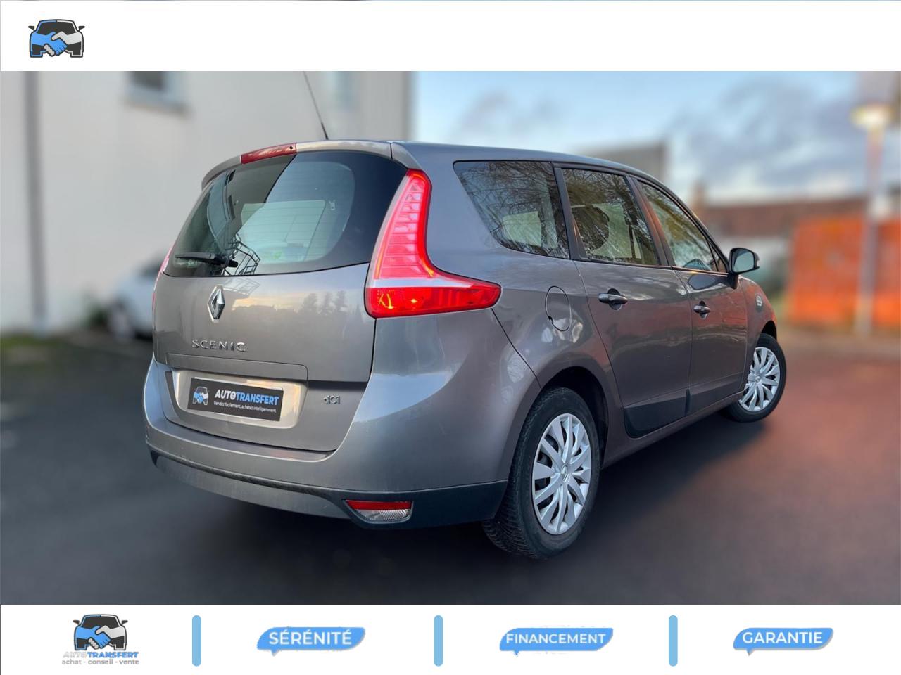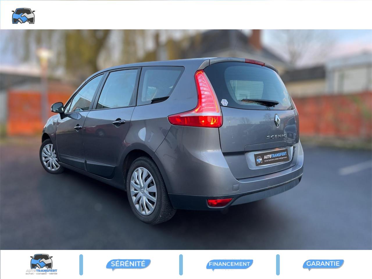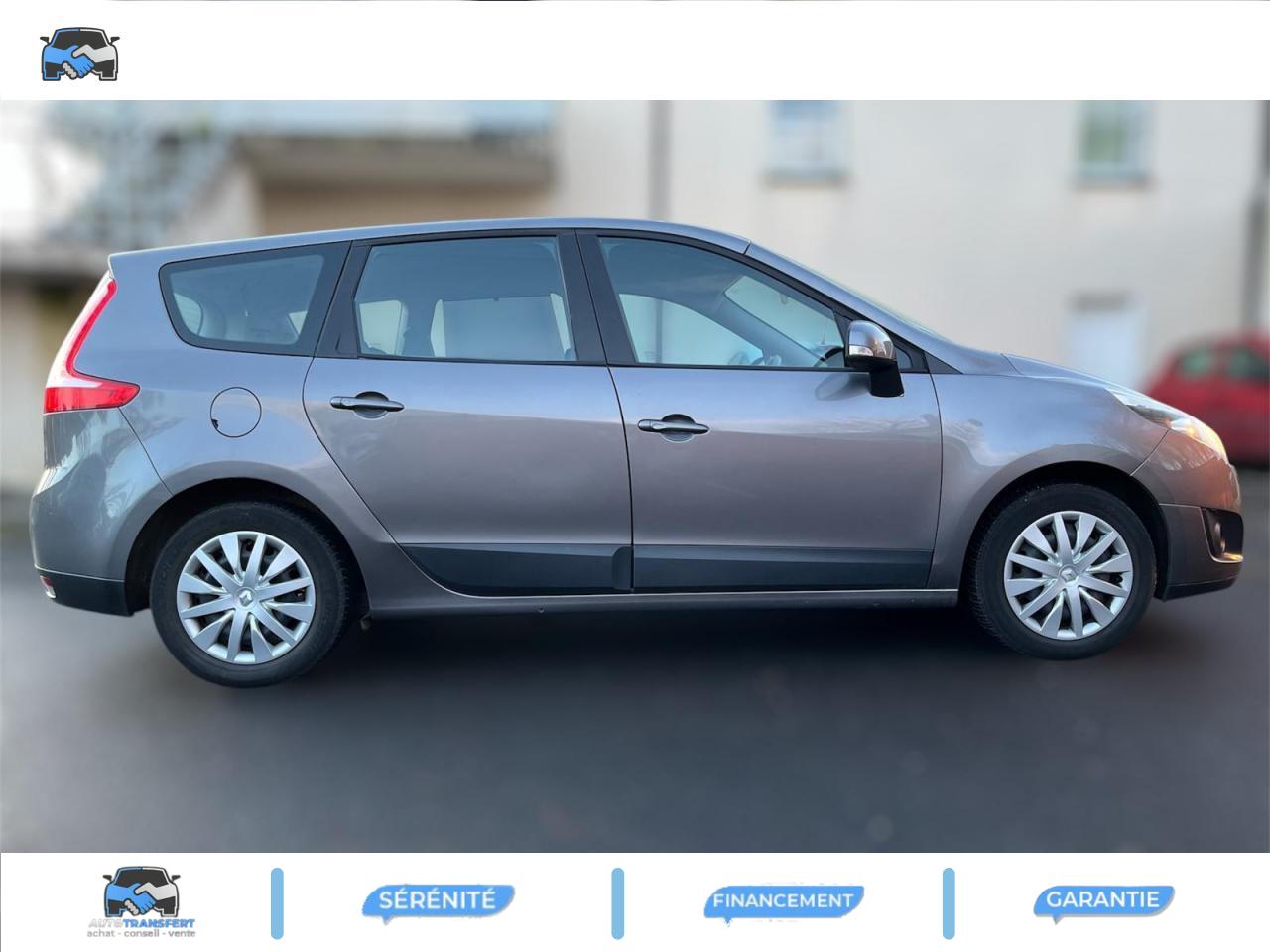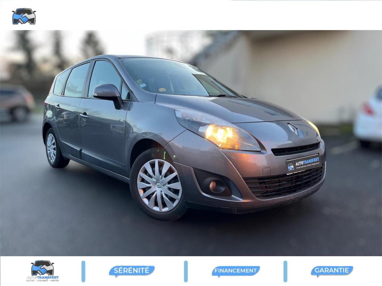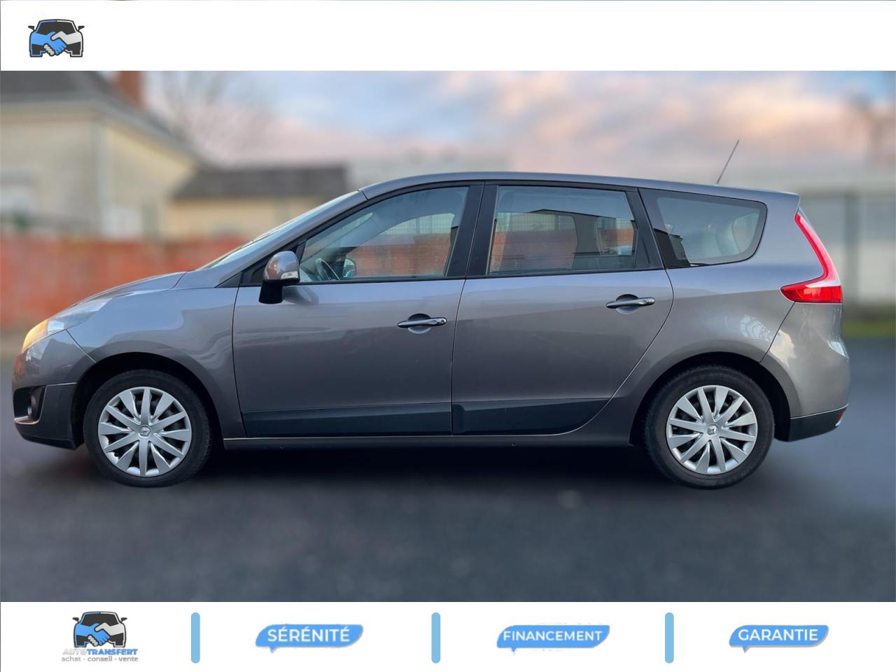2 sièges de 3è rang, escamotables3 sièges de 2è rang, individuels, extractibles, dossiers rabattables et inclinables, fonction portefeuilleABS avec aide au freinage d'urgenceAirbags frontaux conducteur et passager adaptatifs (airbag passager déconnectable)Airbags latéraux thorax/abdomen/bassin conducteur et passager avantAirbags rideaux de têtes aux places avant et arrièreAllumage automatique des feux de détresseAllumage automatique des projecteursAllumage et extinction progressifs de l'éclairage intérieur commandés par la carte RenaultAntidémarrage électronique codé activé par transpondeurAppuis-tête avant à réglage confortAppuis-tête réglables en hauteur à toutes les placesBoîte à gants éclairée et réfrigéréeCache-bagages amovible à positions multiplesCarte Renault à télécommande avec condamnation centralisée des ouvrantsCeintures de sécurité 3 points au rang 3Ceintures de sécurité avant 3 points avec double prétensionneurs adaptatifs et limiteurs d'effortCeintures de sécurité centrale et latérales arrière 3 points, avec limiteurs d'effortCendrier nomade et allume cigare (prise 12 volts)Climatisation régulée bi-zone, filtre d'habitacle et aérateurs latéraux au rang 2Condamnation automatique des ouvrants en roulantConduits de chauffage au rang 2Contrôle dynamique de trajectoire (ESC), fonction antipatinage ASR (déconnectable), contrôle de sous-virage (CSV)Crochets (x4) d'arrimage des bagages dans le coffreDirection à assistance variable électriqueEclairage d'extérieur d' accompagnementEclaireurs de cave et sol avant et arrièreEnjoliveurs de roues 16" CompléaEssuie-glace à déclenchement automatiqueEssuie-glace arrière avec déclenchement automatique en marche arrièreFrein de parking assistéKit de réparation de pneusLève-vitres avant et arrière électriques, à impulsion avec dispositif anti-pincementMasques de projecteurs noir grand brillantMiroir de conversationOrdinateur de bord (7 fonctions)Pare-soleil latéraux de rang 2Poches aumônières au dos des sièges avant (1 en bas, 2 en haut)Poignées de portes extérieures ton caissePrise 12 volts rangs 2 et 3 (ou de coffre en version 5 places)Projecteurs antibrouillardRadioSat Classic, CD MP3, Bornier audio intégré en planche de bordRange-tendeletRangement central ouvert entre sièges avantRecyclage de l'airRégulateur et limiteur de vitesseRétroviseurs extérieurs couleur carrosserieRétroviseurs extérieurs électriques et dégivrantsSellerie « Pleven » beigeSiège central arrière avec mise en tabletteSiège conducteur à réglage lombaireSiège conducteur réglable en hauteurSiège passager avant rabattableSpots de lecture conducteur et passager, de rang 2 et de rang 3 (6 en tout)Système de fixation ISOFIX 3 points pour siège enfant aux 3 places arrière rang 2Tableau de bord à écran couleur personnalisable à technologie TFTTablettes aviation au dos des sièges avantTapis de sol carbone très foncéTémoin d'oubli de ceinture à tous les rangsTiroirs sous les sièges avantTrappes de rangement sous les pieds avant et arrièreVolant réglable en hauteur et en profondeur