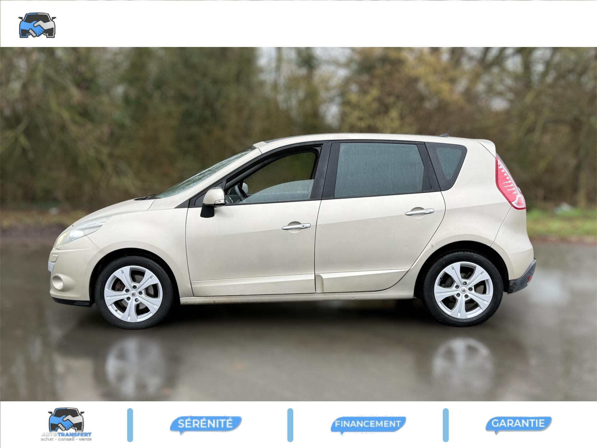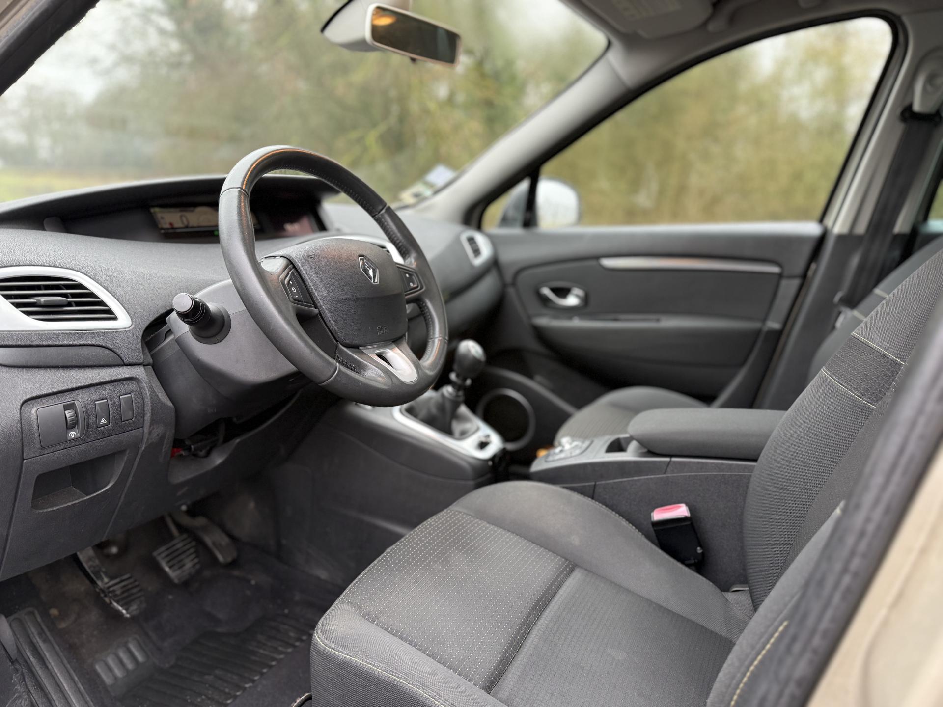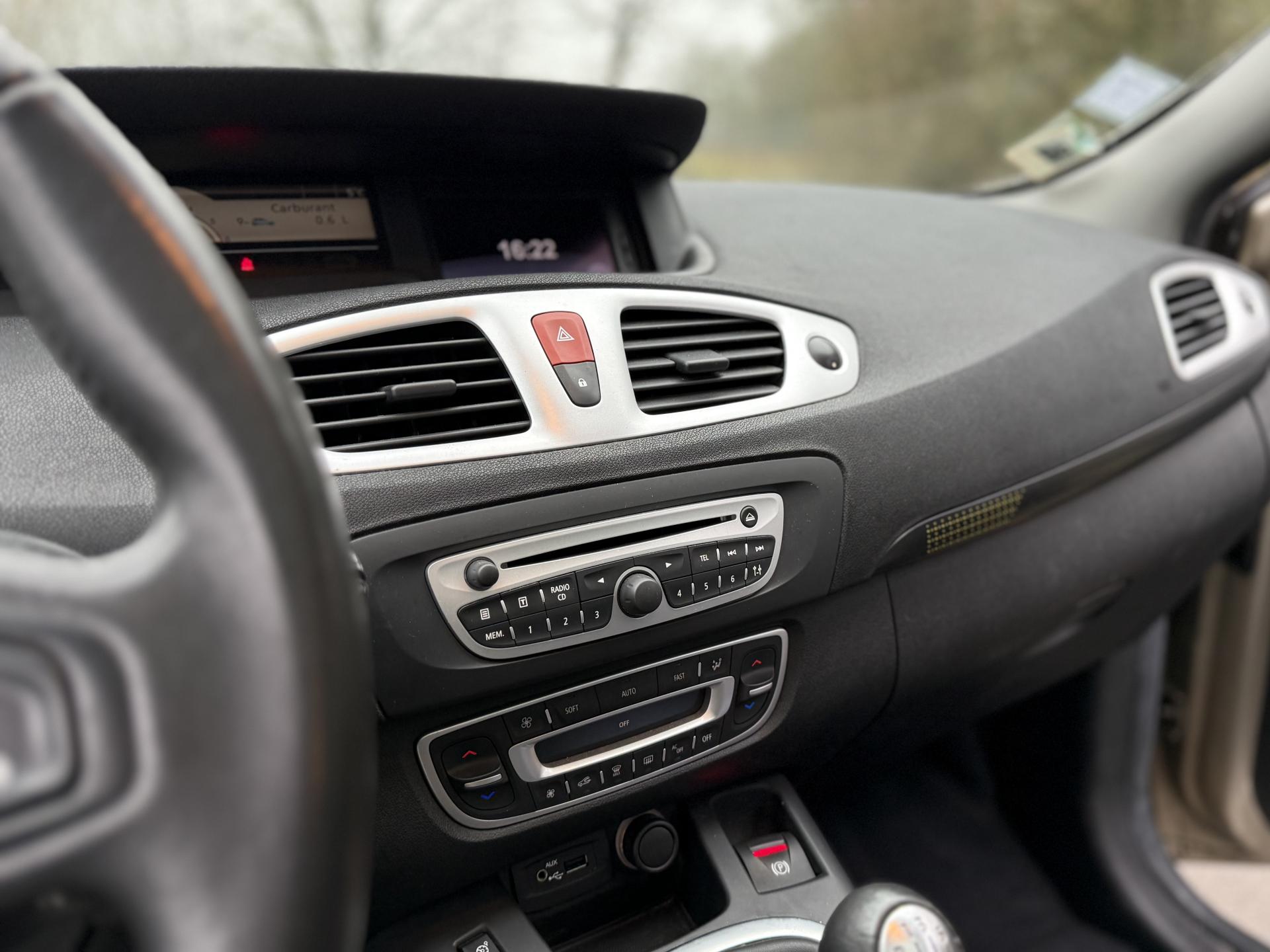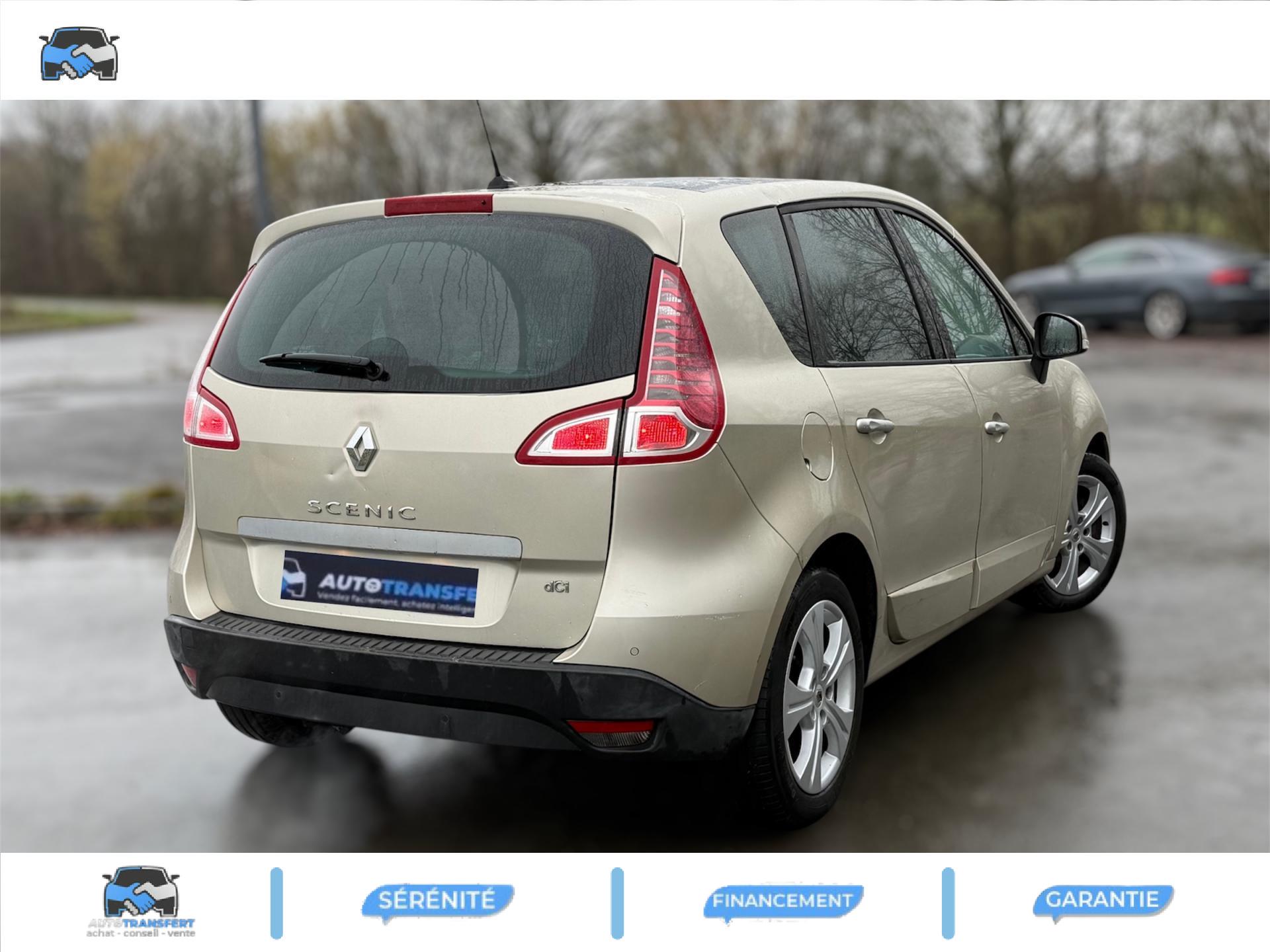 2 sièges de 3è rang, escamotables3 sièges de 2è rang, individuels, extractibles, dossiers rabattables et inclinables, fonction portefeuilleABS avec aide au freinage d'urgenceAide au stationnement arrièreAirbags frontaux conducteur et passager adaptatifs (airbag passager déconnectable)Airbags latéraux thorax/abdomen/bassin conducteur et passager avantAirbags rideaux de têtes aux places avant et arrièreAllumage automatique des feux de détresseAllumage automatique des projecteursAllumage et extinction progressifs de l'éclairage intérieur commandés par la carte RenaultAntidémarrage électronique codé activé par transpondeurAppuis-tête avant à réglage confortAppuis-tête réglables en hauteur à toutes les placesBoîte à gants éclairée et réfrigéréeCache-bagages amovible à positions multiplesCarminat TomTomCarte Renault, accès et démarrage « mains-libres »Ceintures de sécurité avant 3 points avec double prétensionneurs adaptatifs et limiteurs d'effortCeintures de sécurité centrale et latérales arrière 3 points, avec limiteurs d'effortCendrier nomade et allume cigare (prise 12 volts)Climatisation régulée bi-zone, filtre d'habitacle et aérateurs latéraux au rang 2Condamnation automatique des ouvrants en roulantConduits de chauffage au rang 2Console centrale de rangement coulissante avec accoudoir coulissantContrôle dynamique de trajectoire (ESC), fonction antipatinage ASR (déconnectable), contrôle de sous-virage (CSV)Crochets (x4) d'arrimage des bagages dans le coffreDirection à assistance variable électriqueEclairage d'extérieur d' accompagnementEclaireurs de cave et sol avant et arrièreEssuie-glace à déclenchement automatiqueEssuie-glace arrière avec déclenchement automatique en marche arrièreFrein de parking assistéJantes en alliage 16" « Spirale »Kit de réparation de pneusKit mains libres de téléphonie BluetoothLève-vitres avant et arrière électriques, à impulsion avec dispositif anti-pincementMasques de projecteurs noir grand brillantMiroir de conversationMiroirs de courtoisie éclairésMontants de vitres avant et enjoliveurs de pied milieu noir grand brillantOrdinateur de bord (7 fonctions)Pack CityPack Look ScenicPare-soleil latéraux de rang 2Poches aumônières au dos des sièges avant (1 en bas, 2 en haut)Poignées de portes extérieures chrome satiné (si Carte Renault mains-libres)Prise 12 volts rangs 2 et 3 (ou de coffre en version 5 places)Prise 12V dans le coffreProjecteurs antibrouillardRadioSat "3D Sound By Arkamys", Bluetooth, 140w CD MP3, connexion "Plug & Music"RadioSat « 3D Sound By Arkamys », Bluetooth, 140w CD MP3, bornier numérique « Plug & Music »Range-lunettes côté conducteurRecyclage de l'airRégulateur et limiteur de vitesseRétroviseur intérieur électrochromeRétroviseurs extérieurs couleur carrosserieRétroviseurs extérieurs électriques et dégivrantsSellerie « Lilox » chocolatSiège central arrière avec mise en tabletteSiège conducteur à réglage lombaireSiège conducteur réglable en hauteurSiège passager avant rabattableSiège passager réglable en hauteurSpots de lecture conducteur et passager, de rang 2 et de rang 3 (6 en tout)Surtapis en rangs 1 et 2 (chocolat)Système de fixation ISOFIX 3 points pour siège enfant aux 3 places arrière rang 2Système de surveillance de la pression des pneumatiquesTableau de bord à écran couleur personnalisable à technologie TFTTablettes aviation au dos des sièges avantTapis de sol chocolatTémoin d'oubli de ceinture à tous les rangsTiroirs sous les sièges arrièreTiroirs sous les sièges avantTrappes de rangement sous les pieds avant et arrièreVolant et pommeau de levier de vitesse gainés de cuirVolant réglable en hauteur et en profondeur