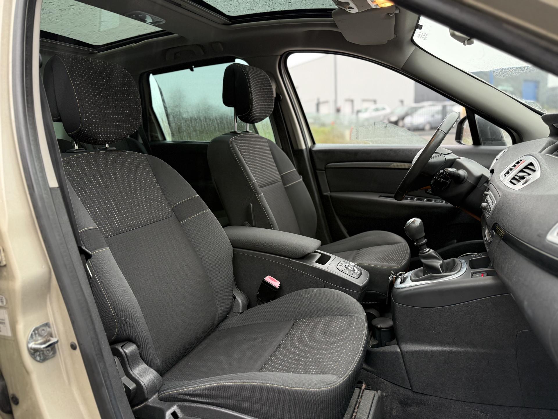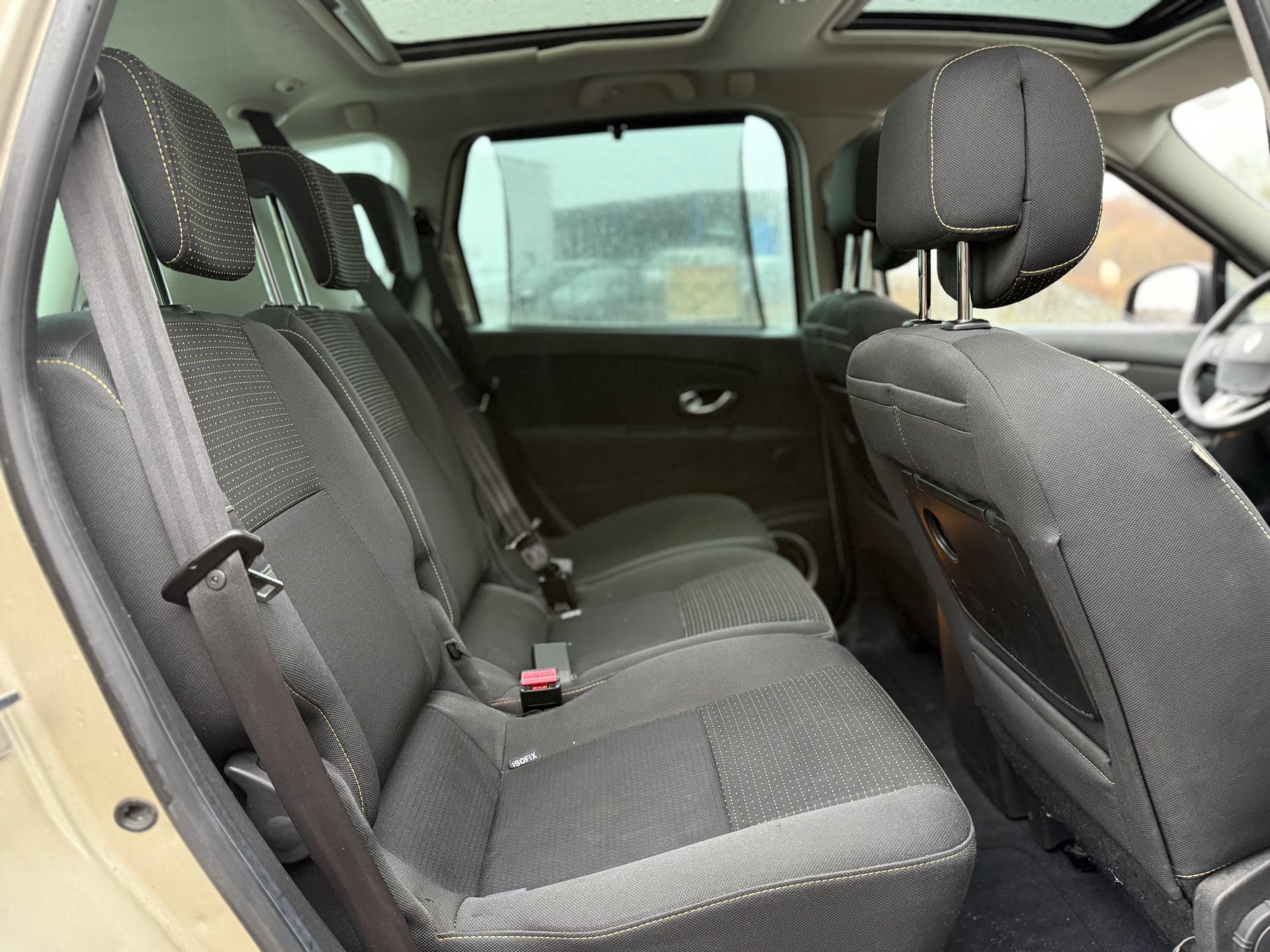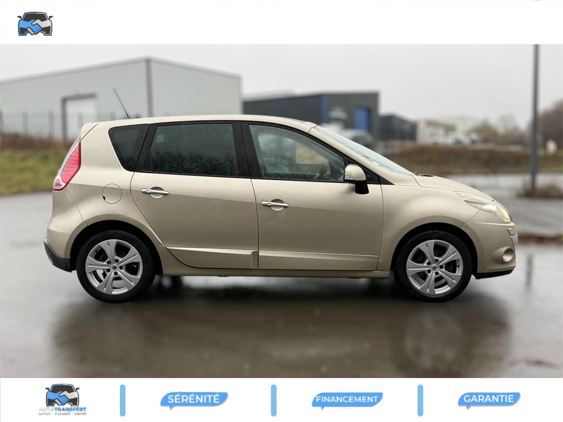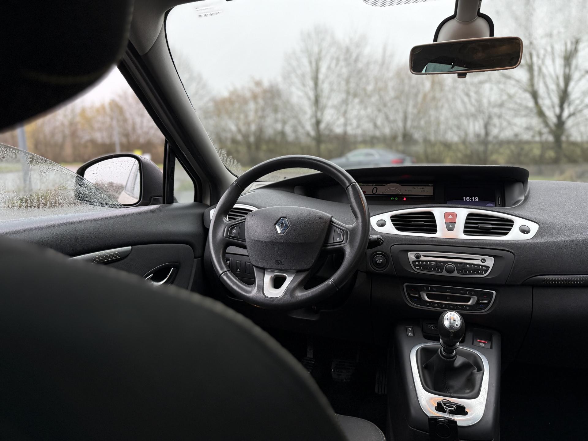 2 sièges de 3è rang, escamotables3 sièges de 2è rang, individuels, extractibles, dossiers rabattables et inclinables, fonction portefeuilleABS avec aide au freinage d'urgenceAide au stationnement arrièreAirbags frontaux conducteur et passager adaptatifs (airbag passager déconnectable)Airbags latéraux thorax/abdomen/bassin conducteur et passager avantAirbags rideaux de têtes aux places avant et arrièreAllumage automatique des feux de détresseAllumage automatique des projecteursAllumage et extinction progressifs de l'éclairage intérieur commandés par la carte RenaultAntidémarrage électronique codé activé par transpondeurAppuis-tête avant à réglage confortAppuis-tête réglables en hauteur à toutes les placesBoîte à gants éclairée et réfrigéréeCache-bagages amovible à positions multiplesCarminat TomTomCarte Renault, accès et démarrage « mains-libres »Ceintures de sécurité avant 3 points avec double prétensionneurs adaptatifs et limiteurs d'effortCeintures de sécurité centrale et latérales arrière 3 points, avec limiteurs d'effortCendrier nomade et allume cigare (prise 12 volts)Climatisation régulée bi-zone, filtre d'habitacle et aérateurs latéraux au rang 2Condamnation automatique des ouvrants en roulantConduits de chauffage au rang 2Console centrale de rangement coulissante avec accoudoir coulissantContrôle dynamique de trajectoire (ESC), fonction antipatinage ASR (déconnectable), contrôle de sous-virage (CSV)Crochets (x4) d'arrimage des bagages dans le coffreDirection à assistance variable électriqueEclairage d'extérieur d' accompagnementEclaireurs de cave et sol avant et arrièreEssuie-glace à déclenchement automatiqueEssuie-glace arrière avec déclenchement automatique en marche arrièreFrein de parking assistéJantes en alliage 16" « Spirale »Kit de réparation de pneusKit mains libres de téléphonie BluetoothLève-vitres avant et arrière électriques, à impulsion avec dispositif anti-pincementMasques de projecteurs noir grand brillantMiroir de conversationMiroirs de courtoisie éclairésMontants de vitres avant et enjoliveurs de pied milieu noir grand brillantOrdinateur de bord (7 fonctions)Pack CityPack Look ScenicPare-soleil latéraux de rang 2Poches aumônières au dos des sièges avant (1 en bas, 2 en haut)Poignées de portes extérieures chrome satiné (si Carte Renault mains-libres)Prise 12 volts rangs 2 et 3 (ou de coffre en version 5 places)Prise 12V dans le coffreProjecteurs antibrouillardRadioSat "3D Sound By Arkamys", Bluetooth, 140w CD MP3, connexion "Plug & Music"RadioSat « 3D Sound By Arkamys », Bluetooth, 140w CD MP3, bornier numérique « Plug & Music »Range-lunettes côté conducteurRecyclage de l'airRégulateur et limiteur de vitesseRétroviseur intérieur électrochromeRétroviseurs extérieurs couleur carrosserieRétroviseurs extérieurs électriques et dégivrantsSellerie « Lilox » chocolatSiège central arrière avec mise en tabletteSiège conducteur à réglage lombaireSiège conducteur réglable en hauteurSiège passager avant rabattableSiège passager réglable en hauteurSpots de lecture conducteur et passager, de rang 2 et de rang 3 (6 en tout)Surtapis en rangs 1 et 2 (chocolat)Système de fixation ISOFIX 3 points pour siège enfant aux 3 places arrière rang 2Système de surveillance de la pression des pneumatiquesTableau de bord à écran couleur personnalisable à technologie TFTTablettes aviation au dos des sièges avantTapis de sol chocolatTémoin d'oubli de ceinture à tous les rangsTiroirs sous les sièges arrièreTiroirs sous les sièges avantTrappes de rangement sous les pieds avant et arrièreVolant et pommeau de levier de vitesse gainés de cuirVolant réglable en hauteur et en profondeur
