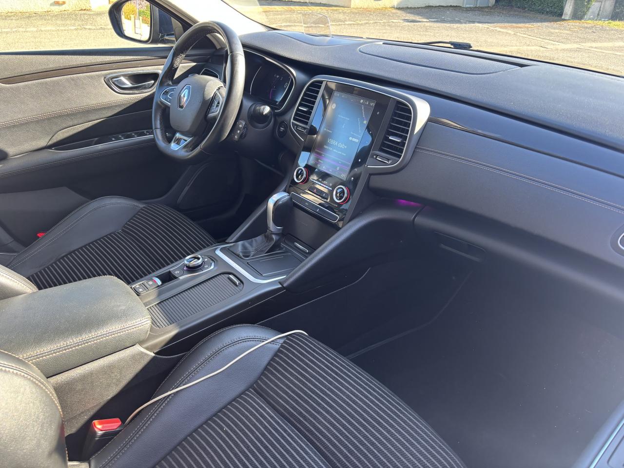 Attache RemorqueCâbles DashCamCarte Renault mains-libres avec allumage des feux à l'approcheClimatisation automatique bi-zoneContrôle dynamique de trajectoire (ESC)Détecteur de pluie et allumage automatique des projecteursEco driving (Monitoring, Scoring, Coaching et conseils)Feux LED Pure VisionJantes alliage 18" Duetto Gris Erbé diamantéPack Aides à la conduiteRails de toit en aluminiumRangement console sous accoudoir avec plateau amovibleSellerie tissu/similicuir NoirSeuils de portes avant et arrièreSystème d'aide au parking avant et arrièreSystème Link : intégration Apple CarPlay et compatibilité Android AutoSystème Stop & StartTapis Renault TalismanVolant cuir réglable en hauteur et profondeur