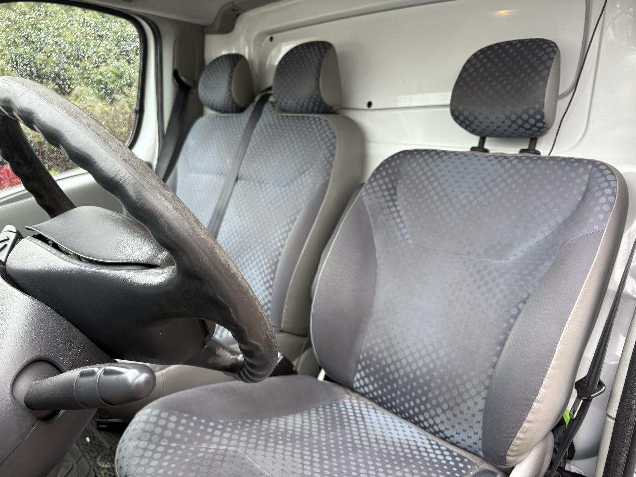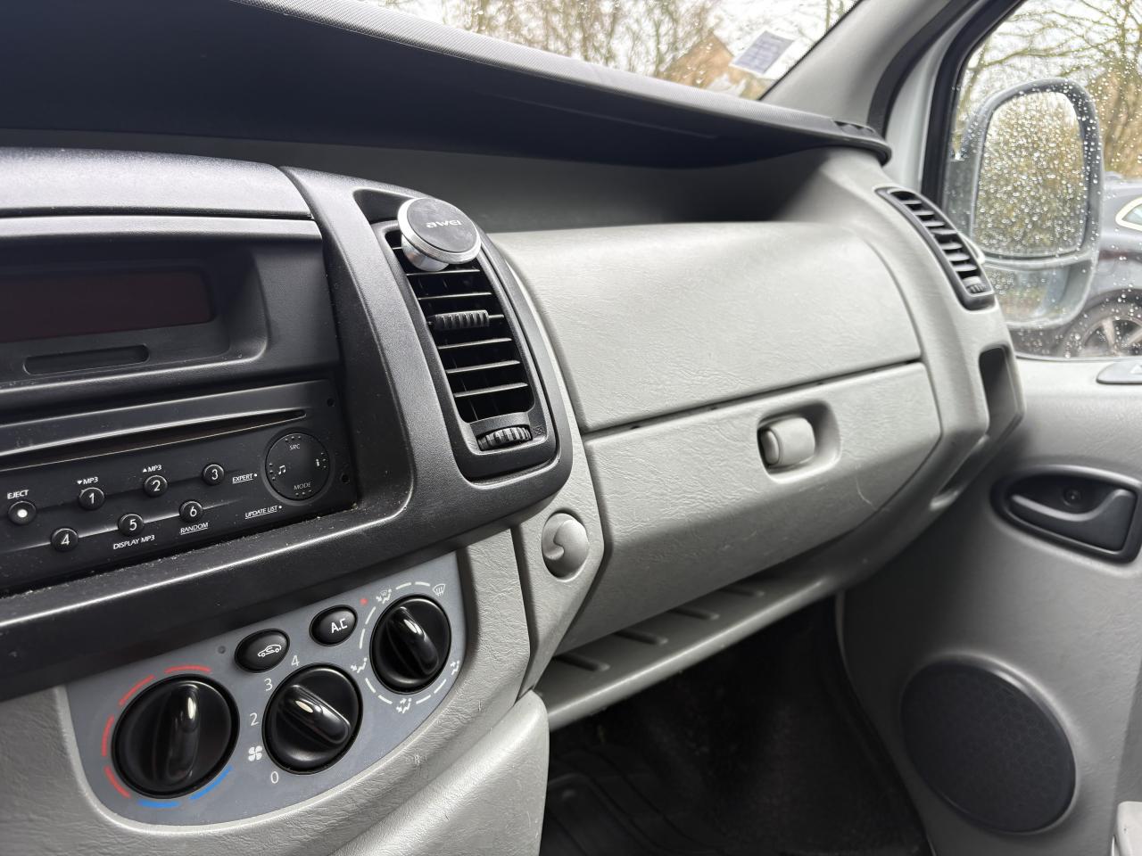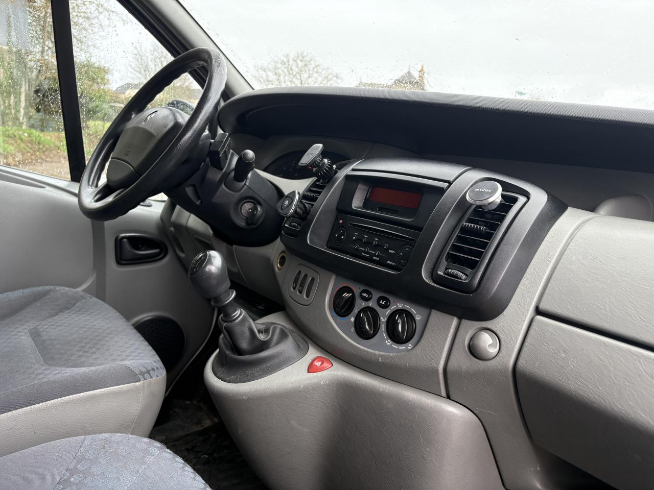 1e rang arrière: banquette 2 places " Confort" avec mousse haute densité, maintien latéral renforcé et accoudoirs2ème rang arrière : banquette 3 places "Confort" avec mousse haute densité, maintien latéral renforcé et accoudoirs6 anneaux d'arrimage au sol à capacité renforcéeABS avec EBV (répartiteur électronique de freinage) et Aide au Freinage d'Urgence, associé à 4 freins à disqueAide au stationnement arrièreAirbag frontal passagerAlternateur renforcé (capacité de charge de 150 A pour 2.0 dCi et 2.5 dCi)Boîte à gants grand volume, fermée, éclairée, avec range-lunette intégré au portillonCache-bagagesChauffage et ventilation à 4 vitesses et fonction recyclage ; vitres teintéesClignotants et répétiteurs latéraux avant "cristal"Climatisation avant et arrièreCondamnation des Portes Electrique (CPE) avec télécommande et fonction CAR (Condamnation Automatique en Roulant)Direction assistée, volant réglable en profondeur, boîte 6 vitesses avec levier en planche de bordEnjoliveurs intégraux 16" « Solane », logo chroméEssuie-lunette arrière et lunette arrière chauffanteHabillage complet de l'habitacle et des passages de roues, incluant médaillons de textile sur contre-portes avant et flancs latéraux arrièreHayon vitréHorloge, température d'eau , totalisateurs kilométriques total et partielLimiteur de vitesse avec ordinateur de bordModularité arrière : dernière banquette TRI-FONCTION (repliable, rabattable et démontable sans outils, et intégrant un bac de rangement moquetté de 60 litres sous assise)Ordinateur de bordPack électriquePack LookPack sécurité arrièrePack sécurité avantPack ton caisse 2Pack ton caisse 2Pack visionPanneau latéral gauche vitre ouvrantePassager avant : siège individuel "Confort" avec maintien latéral renforcé, mousse haute densité, réglage lombaire et accoudoirPlanche de bord avec compteurs cerclés gris métalPoignées de maintien au pavillon pour les passagers, à retour amortiPorte latérale coulissante vitre ouvrantePrise 12 V incluant allume cigare en planche de bord et cendrier mobileProjecteurs à glace lisse réglables électriquement en site depuis le poste de conduite et rétroviseurs extérieurs à double miroirRadio CD 4x15w CD mp3Rangements latéraux ouverts arrière incluant porte-gobelets, trappe à ski sous banquette, et poche aumônières au dos des sièges avantRoue de secours tôle noire, 16”Sellerie velours "Milagro"Siège conducteur "confort" avec maintien latéral renforcé, mousse haute densité, réglage lombaire et accoudoirSurtapis antidérapant et anti-salissure côté conducteurTapis moquette intégral en zone arrière
