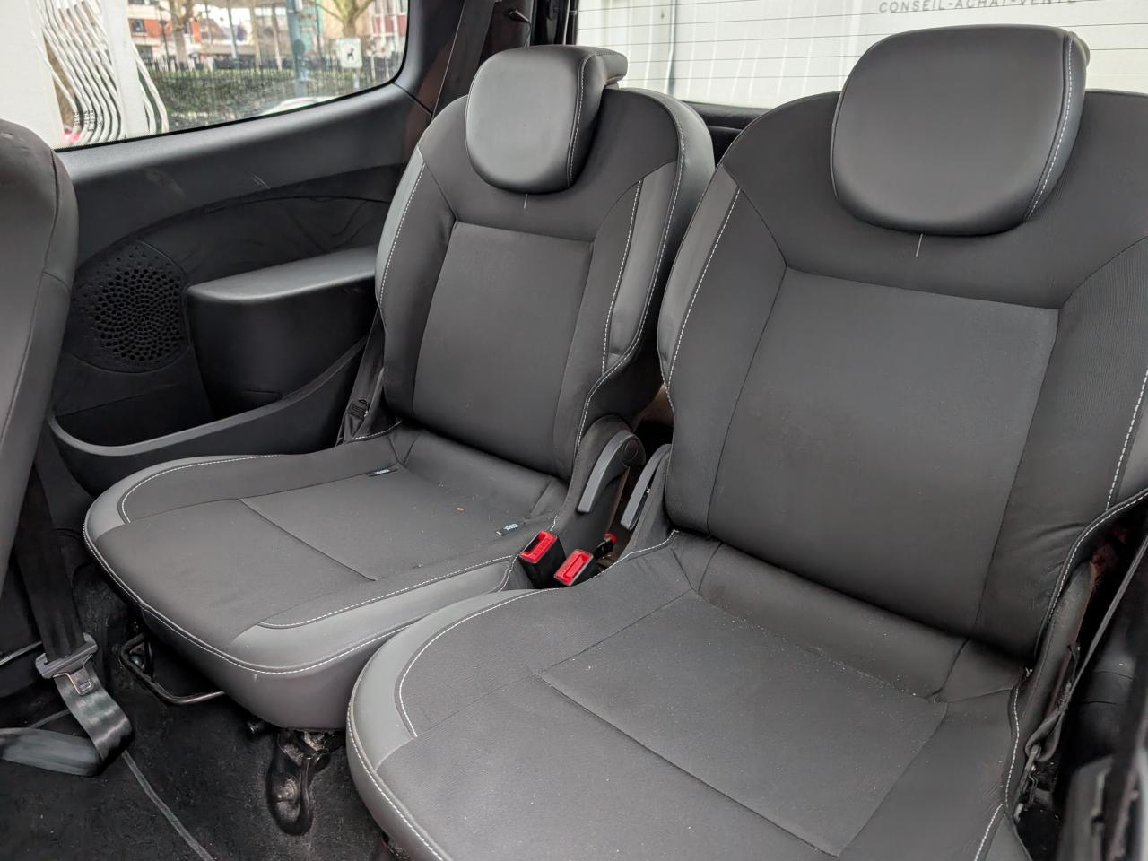 Équipements principaux : climatisation, Bluetooth, vitres électriques, commandes au volant, sièges arrière coulissants, barres de toit, vitres teintées, roue de secours.