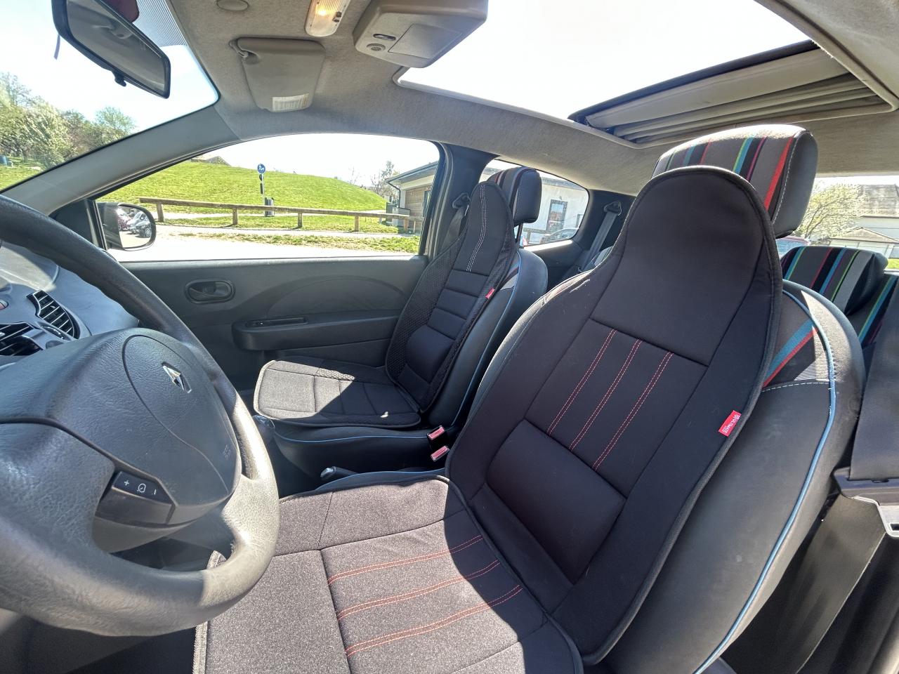 2 appuis-tête arrière « Virgule » réglables en hauteurAirbag latéraux avantAirbags conducteur et passagerAlerte sonore de non-port de ceinture conducteurAlerte sonore de non-port de ceinture passagerAntiblocage des roues (ABS)Appuis-têtes arrièreAssistance au freinage d'urgenceBac de rangement ouvert coté conducteur sur la coiffeBaguette de protection latérale Noir GrainéBanquette arrière fixe rabattable 1/1Boîte à gants (13 l) avec portillonClimatisation manuelleCondamnation centralisée des portes à distanceCoquilles de rétroviseur noireDirection assistée électrique à assistance variableEmplacement 2 portes-canettes sur console centrale avantEnjoliveur Moai noireEntourage d'antibrouillard avant : ton caisseEssuie-glace arrière avec déclenchement automatique en marche arrièreLève-vitres avant électriques conducteur et passagerMiroir de courtoisie passagerPare-soleil conducteur : miroir occultable et range ticketPré-équipement audio 40 W (2 HP bi-cônes)Prise 12VProjecteurs antibrouillardR-Plug&Radio+ (avec afficheur déporté, CD, commandes au volant, Plug&Music et connexion Bluetooth)Rétroviseurs extérieurs à réglage manuelToit ouvrant panoramique électrique en toileVerrouillage automatique des portes et du coffre en roulant, programmable. Décondamnation automatique en cas de chocVolant réglable en hauteur