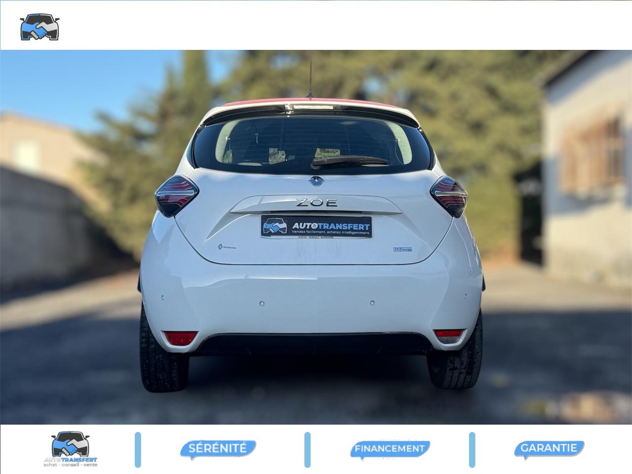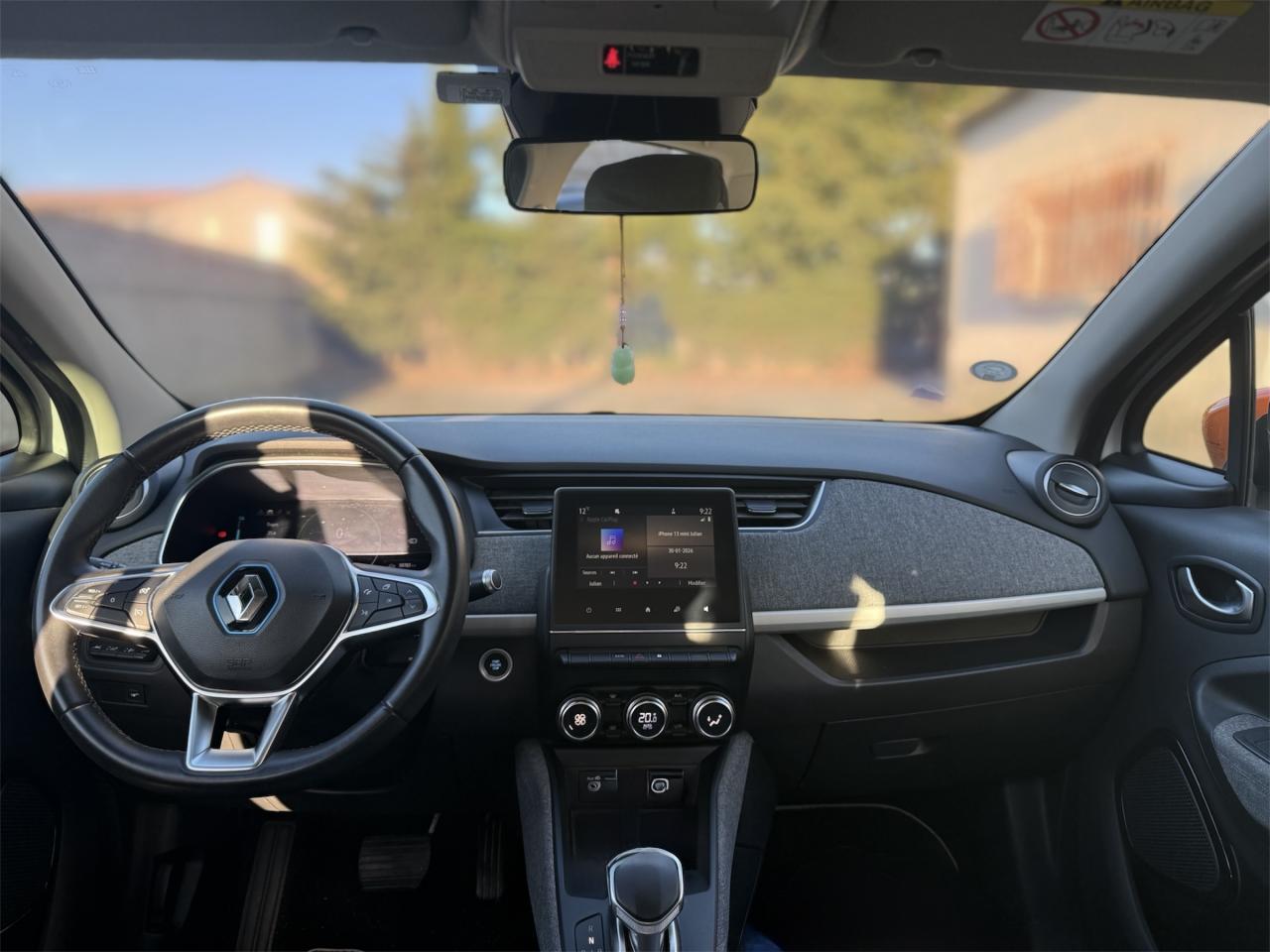 2 appuie-têtes arrière latéraux réglables en hauteur2 prises USB à l'arrière2 prises USB et prise Aux-In3 appuie-tête arrière réglables en hauteur6 haut-parleursABS avec aide au freinage d'urgenceAide au démarrage en côteAirbags frontaux et latéraux conducteur et passagerAlerte de franchissement de ligneAllumage automatique des feux de détresseAssistance au maintien de voieBandeau de planche de bord et médaillon de porte en textile recyclé RecytexBanquette arrière rabattable 1/3-2/3BluetoothBoîte à gants avec couvercle fermant à cléBoîte automatique à rapport unique (réducteur)Bouton sur volant pour commande vocaleCâble de recharge Flexi Charger (6,5 m) pour prise Green Up Access et prises domestiquesCapteur de qualité de l'airCarte Renault, accès et démarrage « mains-libres »Chargeur Caméléon adaptatif mono-triphasé jusqu’à 22 KWClignotants défilants à l'arrièreClimatisation automatiqueCondamnation automatique des ouvrants en roulantContrôle dynamique de trajectoire (ESP) avec fonction antipatinage (ASR) et contrôle de sous-virage (CSV)Coques de rétroviseurs extérieurs, ton caisseEASY LINK, écran multimédia 7”, compatible Android Auto et Apple CarPlayEconomètre, jauge batterie et compteur kilométrique intégrés au tableau de bordEssuie-glaces avant automatique avec détecteur de pluie et allumage automatique des feuxFeux arrière LEDFeux de jour à LED avec signature lumineuse en forme de "C"Frein de parking électrique avec fonction Auto-HoldGestion automatique des feux de route /feux de croisementHarmonie noirJantes Alliage 16" ElectiveKit gonflage de réparationLève-vitres avant électriquesLevier de vitesse e-Shifter avec mode BLimiteur et régulateur de vitesse avec commandes au volantPeinture Blanc GlacierPneumatiques Michelin Primacy 4-EPoche aumônière au dos du siège passagerPoignées de portes ton caissePommeau de levier de vitesses en cuirProgrammation de la charge et de la climatisation depuis le système multimédia EASY LINKProgramme Eco-modeProjecteurs Full LEDRétroviseur intérieur électrochromeRétroviseurs extérieurs électriques et dégivrantsRadio Numérique DABRangement bouteille 1,5 l dans portes avantReconnaissance des panneaux de signalisationSellerie en tissu recyclé RecytexService Auto-Update - 3 ans inclusServices connectés depuis l’application MY Renault: état de charge, préconditionnement de l’habitacle, planificateur de trajetSon de prévention piéton Z.E. VoiceSystème de surveillance de pression des pneusSystème Isofix aux places latérales arrière et passager avantTableau de bord numérique 10’’ personnalisableVéhicule connecté 4G avec pack de données inclus pendant 3 ansVolant réglable en hauteur et en profondeurVolant simili-cuir