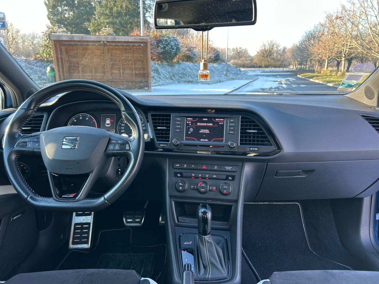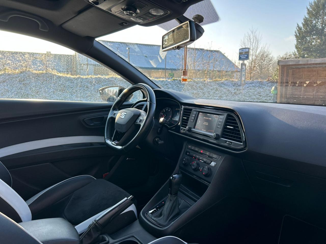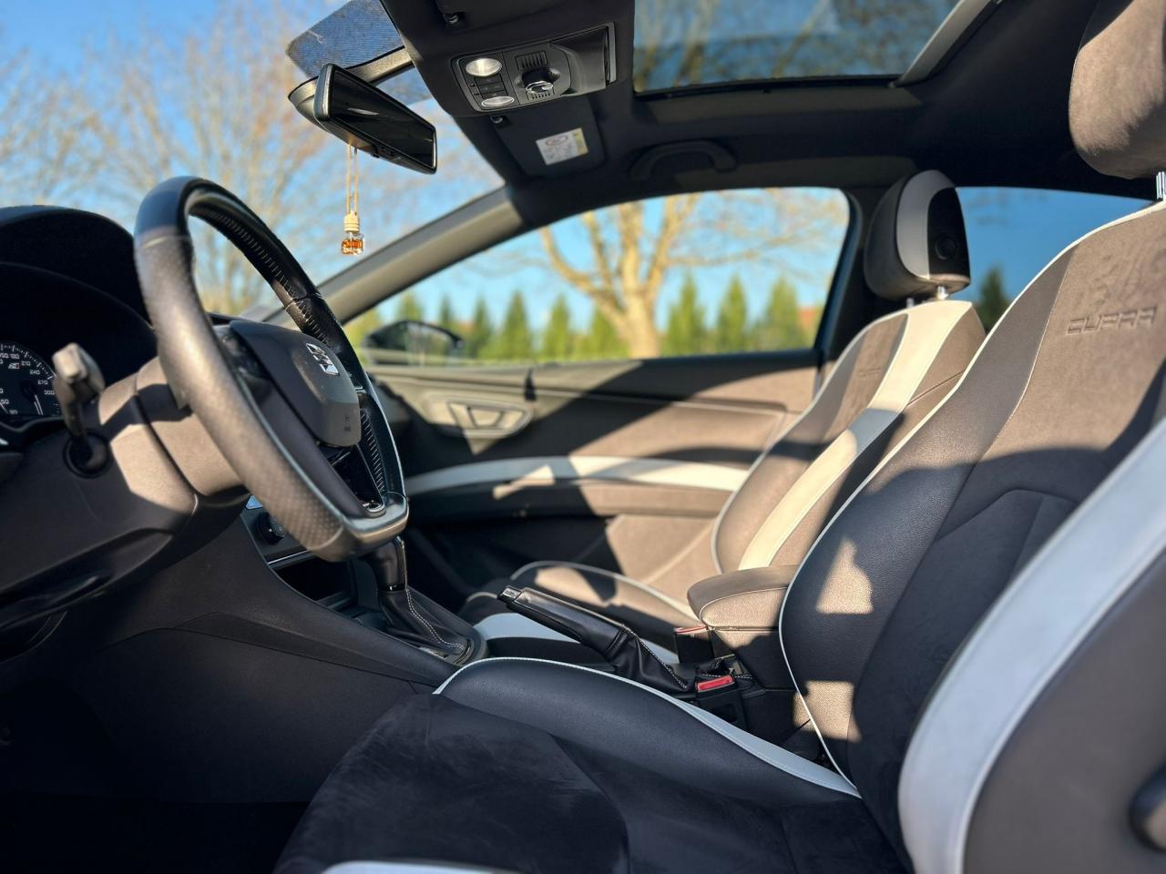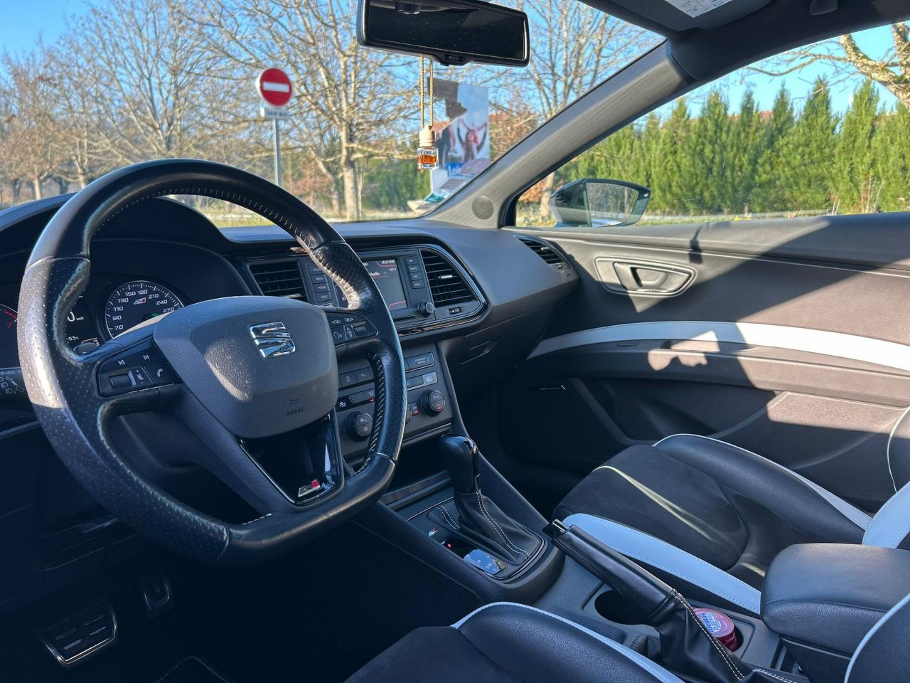 Aide au stationnement avant/arrièreApplications intérieures « Noir laqué »Blocage de différentiel mécanique à régulation électronique (VAQ)Calandre noireChâssis sport CUPRAClimatisation automatique ‘Climatronic'Connexion BluetoothContrôle vocalDétecteur de pluie et allumage automatique des projecteursDeux sorties d'échappement chroméesDirection progressiveEclairage intérieur à LEDEcran tactile 5,8'' couleurEtriers de freins rouges avec logo CUPRAJantes alliage 19'' « CUPRA Titanium »Mode CUPRA avec désactivation de l'ESCPalettes au volantParechocs extérieurs CUPRAPeinture Rouge EmocionPrise USB et carte SDProjecteurs Full LED et feux arrière à LEDRétroviseurs extérieurs rabattables électriquementRétroviseurs noirsRoue de secours taille réduiteSEAT Drive Profile CUPRA, 4 modes de conduiteSEAT Sound system (9 haut-parleurs et caisson de basses à faible encombrement)Seuils de portes CUPRA en aluminiumSièges sport AlcantaraSuspension pilotée DCC (normal/confort/sport)Système de navigation EuropeTiroir de rangement sous les sièges avantVitres arrières surteintéesVitres électriquesVolant à méplat CUPRA