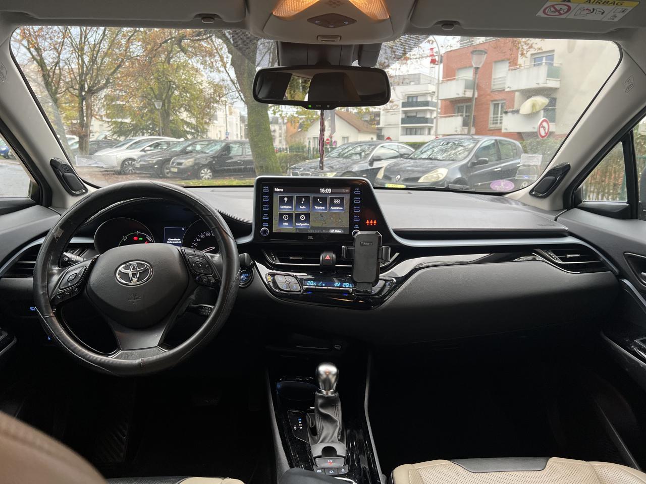 7 Airbags «frontaux» et «latéraux» conducteur et passager AV, «rideaux» passager AV et AR, «genoux» côté conducteurAccoudoir avant avec compartiment de rangementAirbag passager déconnectableAlarme avec système antidémarrageAllumage automatique des projecteursAntenne de toit « aileron de requin »Appel d'urgence - EcallAssistance au démarrage en côteAvertisseur de circulation arrière avec freinage d'urgence automatiqueBecquet avant couleur carrosserieCalculateur de temps de conduite électriqueCaméra de reculCarrosserie bi-ton métallisée ou nacrée/toit noirCiel de pavillon noirClimatisation automatique bi-zoneCoffre à double fond avec plancher surélevéCommandes de boîte de vitesses séquentielleConnexion smartphone (Apple CarPlay et Android Auto)Coques de rétroviseurs noiresDétecteur d'angle mortDirection assistée électrique (EPS)Eclairage d'accueilEcrous antivolEssuie-glace à déclenchement automatiqueFermeture centralisée avec commande à distanceFeu de recul central à LED sur bouclier arrièreFeux arrière à LED, avec clignotants séquentielsFeux de jour à LEDFilet de coffreFrein de stationnement électriqueIndicateur de perte de pression des pneusJantes alliage 18” CatocaKit de réparation anti-crevaisonKit de sécuritéLignes de vitres latérales chroméesLimiteur de vitesseMontant central noir laquéOrdinateur de bord avec écran couleur TFT 4.2” multifonctionOrnement de pare-chocs arrière chromé façon canulesOrnements de console centrale et de portières gris célestinePack ChromePoches aumônières au dos des sièges avantPoignées de portes et pare-choc avant couleur carrosserieProjecteurs adaptatifs avec ajustement automatique de la hauteur des pharesProjecteurs antibrouillard, clignotants et feux arrière à LEDProjecteurs avant à LED avec signature lumineuse premiumRadars de stationnement anticollision (ICS) arrière / avantRéglage manuel du siège passager en hauteurRépartiteur électronique de freinage (EBD)Rétroviseur intérieur anti-éblouissementRétroviseurs extérieurs avec projection au sol du logo Toyota C-HRRétroviseurs extérieurs électriques et dégivrants avec rappels de clignotantsRétroviseurs extérieurs rabattables automatiquementRevêtement supérieur de la planche de bord et de l’accoudoir central noirSellerie cuir et Alcantara noir avec embossage Toyota C-HRServices connectés MyTSiège conducteur à réglages électriques avec réglage lombaire électriqueSièges avant chauffantsSièges avant type sport avec maintiens latérauxSystème audio JBL Premium 9 HPSystème d'amplification de freinage d'urgence (BA)Système d'ouverture / fermeture côté conducteur, passager avant et coffre et démarrage sans clé “Smart Entry & Start”Système d’aide au stationnement intelligent (S-IPA)Système d’avertissement acoustique d’approche du véhicule (AVAS)Système de contrôle de motricité (TRC) et de stabilité (VSC)Système de fixation ISOFIX aux places arrière latéralesSystème de freinage antiblocage (ABS)Système multimédia Toyota Touch avec radio DAB, écran couleur tactile 8” multifonction, système de téléphonie Bluetooth et connectique auxiliaire/USBTapis de sol avant et arrière en veloursToyota Safety Sense 2Toyota Touch & Go Plus 2Vitres électriques avant et arrière avec descente et remontée à impulsionVitres latérales et lunette arrière surteintéesVolant chauffantVolant gainé cuir, multifonction réglable manuellement en hauteur et en profondeur