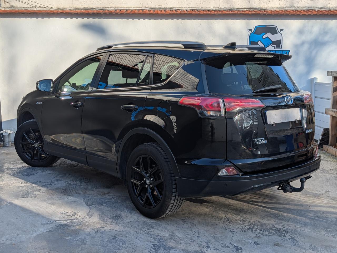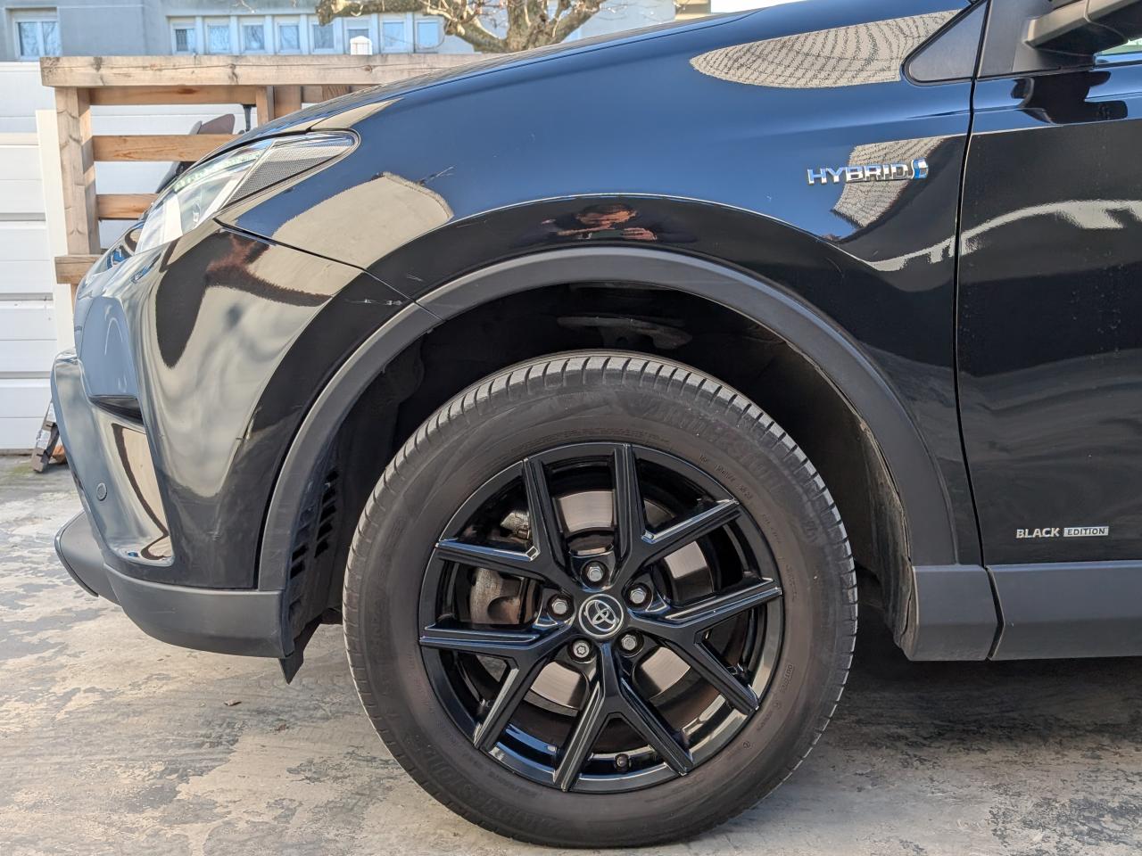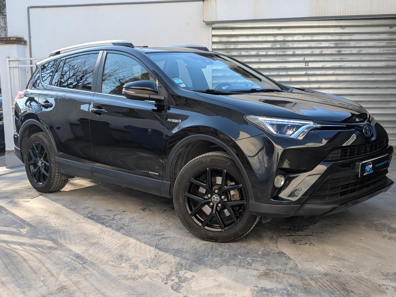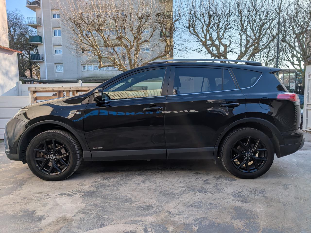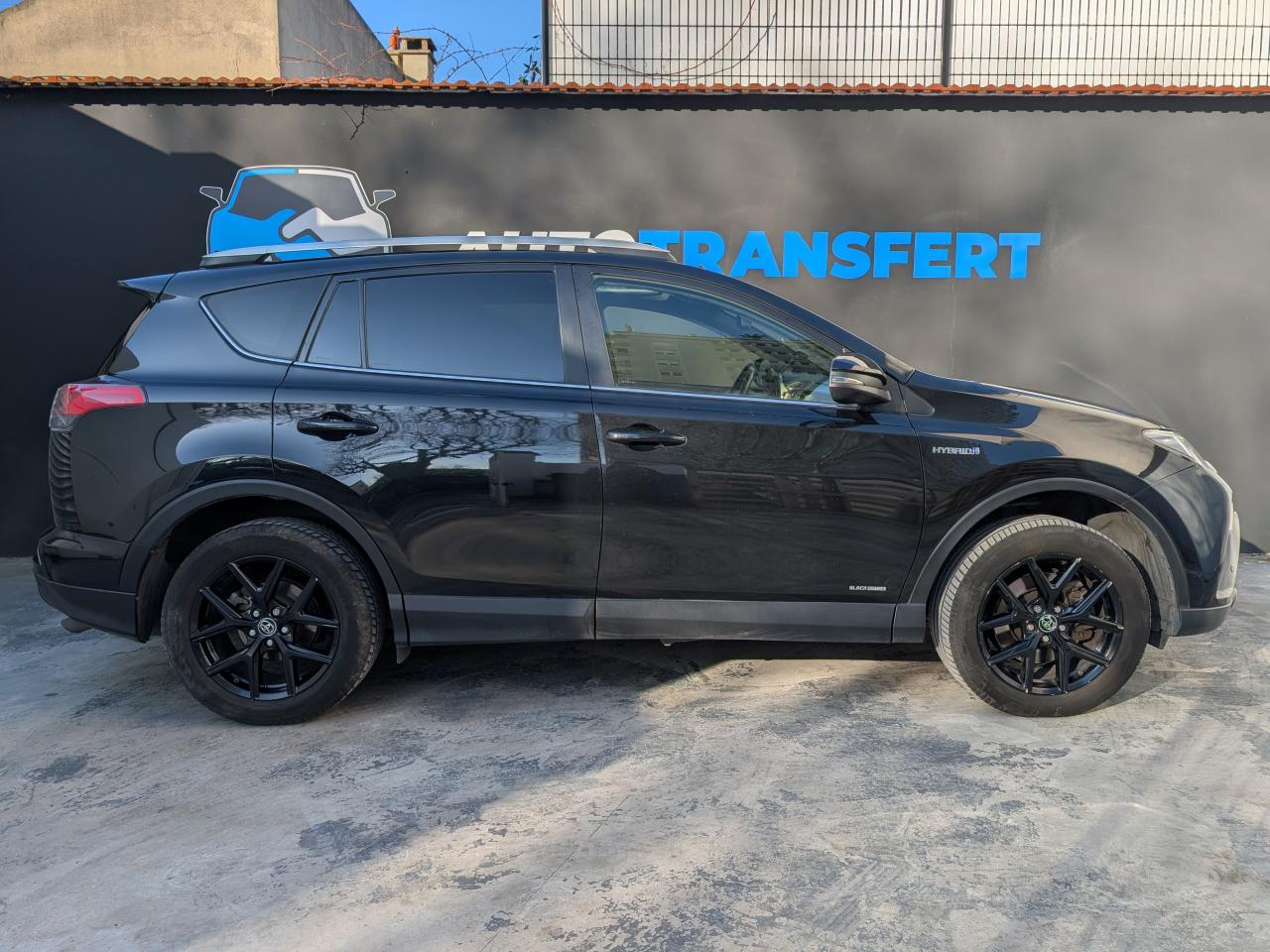Toyota RAV4 Hybride 4x2 Black Edition, boîte automatique CVT, mise en circulation le 23/01/2018, totalisant 178 800 km. Véhicule bien équipé avec toit ouvrant, caméra de recul, radars avant et arrière, sièges avant chauffants et électriques en semi-cuir/alcantara, rétroviseurs rabattables électriquement, barres de toit longitudinales, attelage, roue de secours et dashcam.