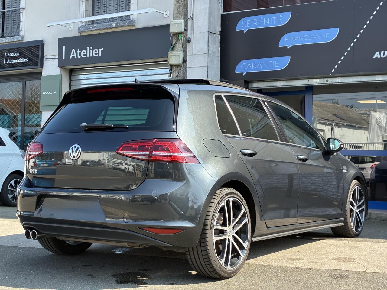Accoudoir central avant réglable avec compartiment de rangement, deux porte-gobelets intégrés et deux bouches d'aération derrière l'accoudoir pour les passagers arrièreAide au stationnement avant et arrière avec signaux sonores et visualisation de la distance des obstacles sur l'écran de la radioAirbag genoux conducteurAirbags frontaux conducteur et passager (déconnectable côté passager)Airbags latéraux avantAirbags rideaux avant et arrièreAlerte de perte de pression des pneusAntenne arrière de toit intégréeApplications ‘Checkered Black'Avertisseur sonore de non-extinction des phares et de non bouclage des ceintures de sécurité (conducteur et passager)Banquette arrière rabattable 2/3 - 1/3 avec accoudoir central et trappe à skisBoîte à gants verrouillable, éclairée et réfrigéréeBoutons d'allumage des phares avec filet chroméCarrosserie entièrement galvaniséeCerclage chromé des instruments de bord et des aérateursCiel de pavillon noirClimatisation automatique ‘Climatronic' bi-zone, réglable séparément pour conducteur et passagerCompartiment de rangement dans le coffreCorrecteur électronique de trajectoire ESP, amplificateur de freinage d'urgence, système d'antiblocage des roues ABS, blocage électronique de différentiel EDS, répartiteur électronique de freinage EBV, antipatinage électronique ASR , r&eacutDirection électromécanique à assistance variable en fonction de la vitesseDirection progressiveDispositif de fixation pour deux sièges enfants suivant norme ISOFIX aux places extérieures arrièreDouble sortie d'échappement chromée à gaucheEclairage à LED de la plaque d'immatriculation arrièreEclairage blanc sur les instruments et rouge sur les commandesEclairage d'ambiance dans les portièresEclairage du coffreFatigue Detection : Système de détection de fatigue du conducteurFeux arrière sombres à LEDFiltre à pollen et à charbons actifsFrein de stationnement électrique avec fonction d'immobilisation en pente ‘Auto-Hold'. Le véhicule se maintient automatiquement en pente et une simple action sur l'accélérateur suffit à désactiver le freinJantes en alliage léger ‘Curitiba' 7J X 17“ et pneumatiques 225/45 R17 avec écrous antivol et châssis sportKeyless Access : Système de verrouillage/déverrouillage sans clé et démarrage avec bouton start/stopLave-essuie-glace arrière à balayage intermittentLiseré gris dans la calandre et les pharesMiroir de courtoisie éclairé dans les pare-soleilOrdinateur de bord couleur avec affichage multifonctionPack VisibilitéPare-chocs avant et arrière spécifiques GTDPare-chocs dans la couleur de la carrosseriePlafonnier à extinction temporiséePlancher de coffre modulablePoignées de portes couleur carrosseriePommeau de levier de vitesse en forme de balle de golfPorte-boissons (2) à l'avant avec volet et porte-boissons (2) à l'arrière escamotablesPorte-bouteille (1,5L) dans les portières avant, vide-poches dans les portières arrièrePre Safe Assist' : Système proactif de protection des passagersPrise 12V dans le coffreProjecteurs antibrouillard à LED (sans éclairage statique d'intersection)Projecteurs bi-Xénon directionnels pour feux de route et feux de croisement. Feux de jour à LED, éclairage statique d'intersection, réglage dynamique du site des phares, lave-phares et témoin de lave-glaceProtection antidémarrage ImmotronicRégulateur de vitesse adaptatif (ACC)Régulateur et limiteur de vitesseRétroviseurs extérieurs couleur carrosserieRétroviseurs extérieurs électriques et dégivrants, asphérique côté conducteurRétroviseurs extérieurs incluant le rappel de clignotantRétroviseurs extérieurs rabattables et réglables électriquement, avec fonction mémoire et dégivrage séparéSeuils de porte éclairés GTDSiège conducteur réglable en hauteurSpots de lecture (2) à l'avant avec cerclage chromé et spots de lecture (2) à l'arrièreSurpiqûres grise sur le cuir du volant et sur le soufflet du levier de vitesseSystème de Freinage anti-multicollisionSystème de protection évitant l'utilisation d'un mauvais carburantSystème Front AssistSystème Navigation & Infotainment ‘Discover Media'Système Start/ Stop avec récupération d'énergie de freinageTapis de sol avant et arrièreTiroirs de rangement sous les sièges avantVerrouillage centralisé avec télécommande à fréquence radio par clé rétractableVitres arrière électriquesVitres avant électriquesVolant 3 branches, réglable en hauteur et en profondeurVolant multifonction en cuir avec commande de la radio, du système Bluetooth, de l'ordinateur de bordVolant sport cuir multifonctionXDS : Système agissant comme un différentiel autobloquant électronique permettant une meilleure motricité en courbe grâce à une répartition optimale de la puissance et du couple sur les roues avant