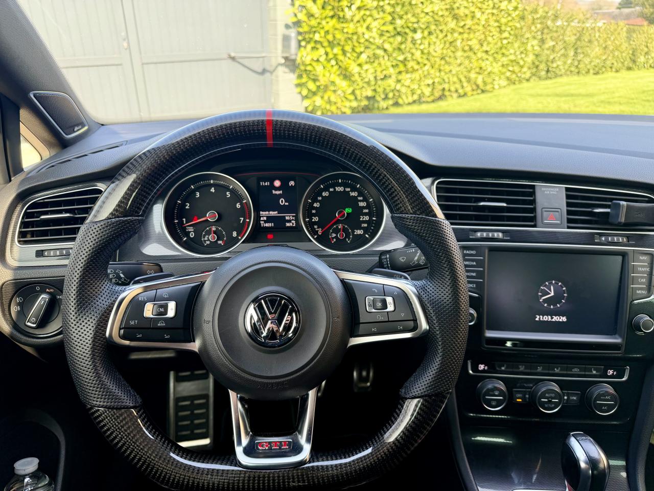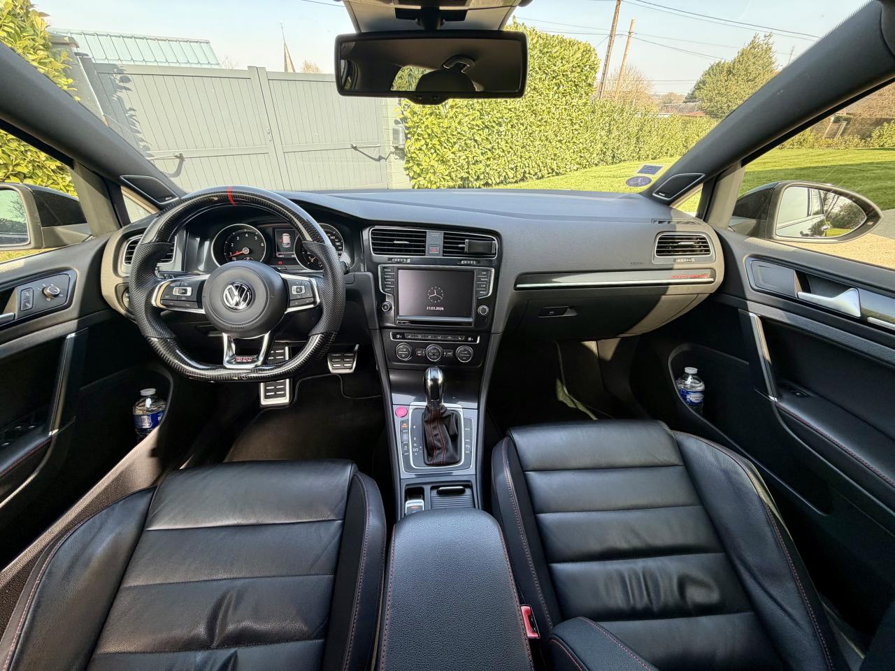 Aide au stationnement avant et arrière avec signaux sonores et visualisation de la distance des obstacles sur l'écran de la radioAirbag genoux conducteurAirbags frontaux conducteur et passager (déconnectable côté passager)Airbags latéraux avantAirbags rideaux avant et arrièreClimatisation automatique ‘Climatronic' bi-zone, réglable séparément pour conducteur et passagerKit de dépannage : compresseur 12 volts et produit d'étanchéité de pneuRégulateur de vitesse adaptatif (ACC)Régulateur et limiteur de vitesseSurpiqûres rouge sur le cuir du volant et sur le soufflet du levier de vitesseSystème Navigation & Infotainment ‘Discover Media'Système Start/ Stop avec récupération d'énergie de freinageVitres arrière électriquesVitres arrière et lunette arrière surteintées à 65%Volant sport cuir multifonction